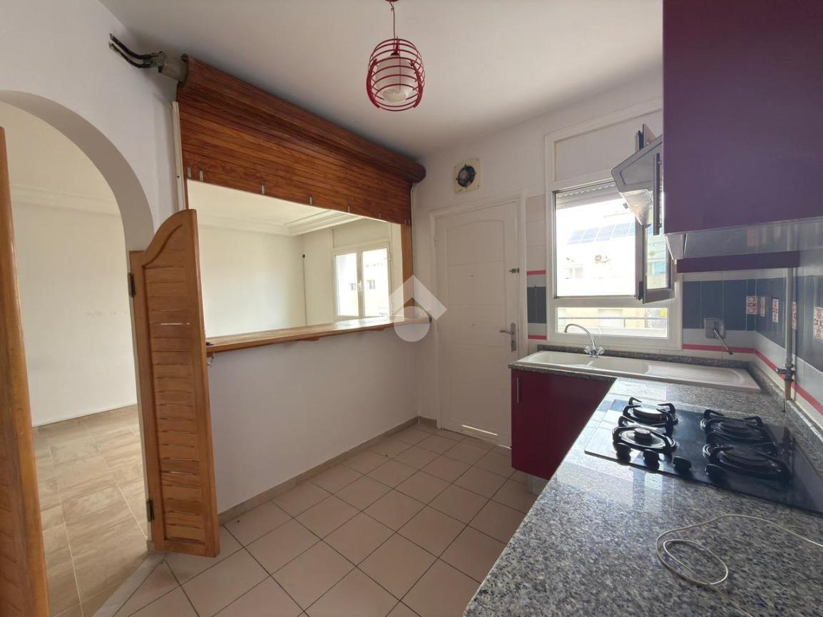 Cet appartement S+2 d’une superficie de 84 m² est situé au septième et dernier étage d’une résidence sécurisée avec double ascenseur à Jardin de l’Aouina.