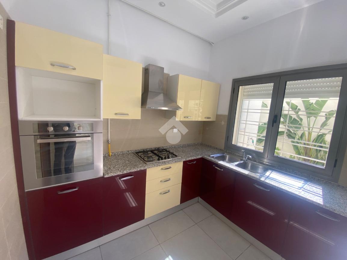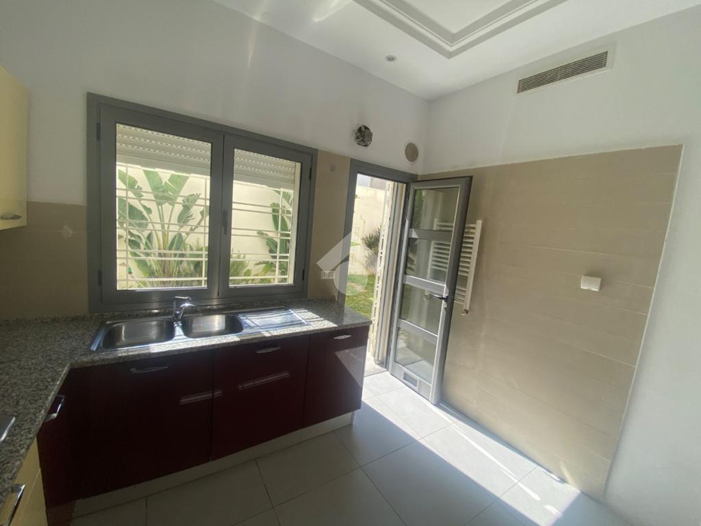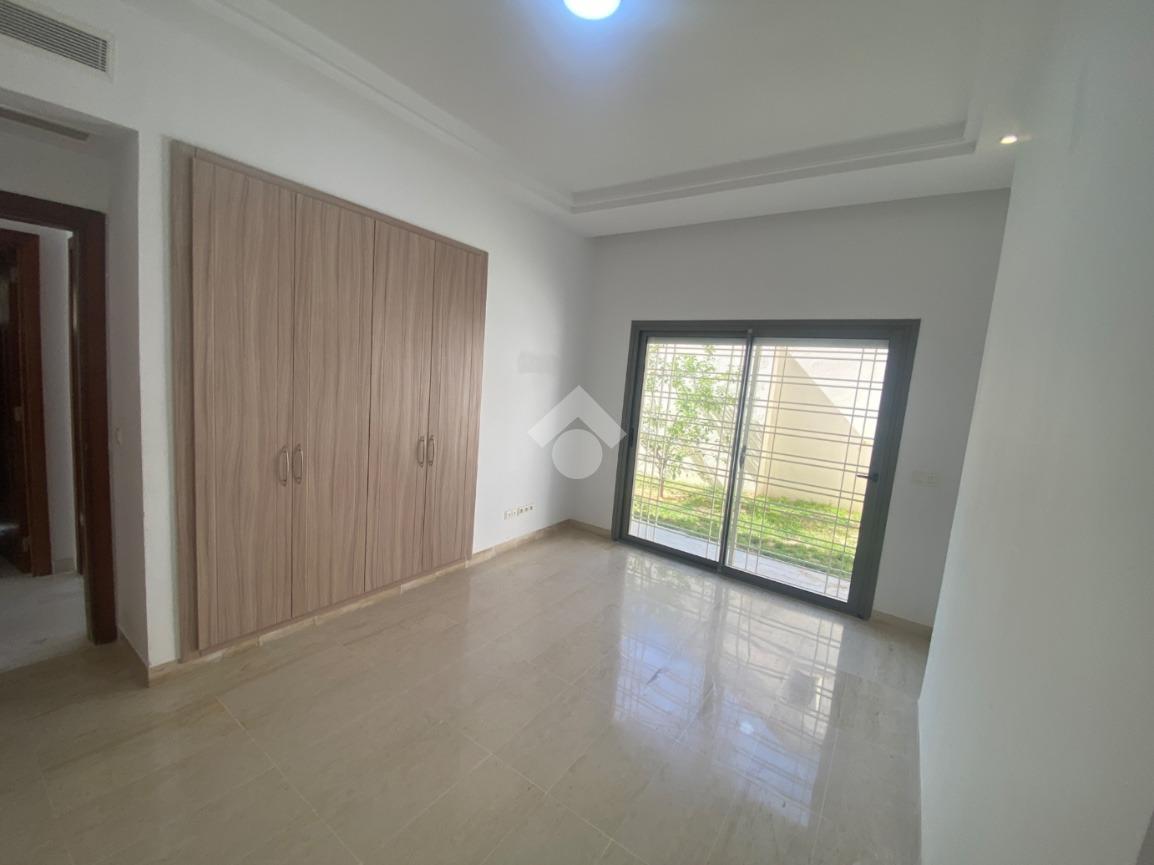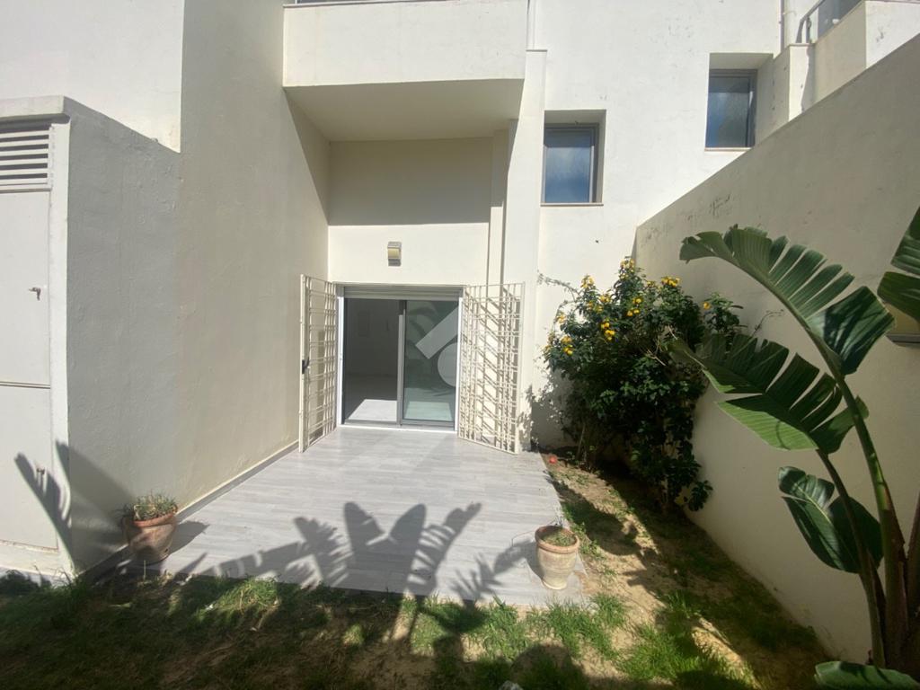 Bel appartement S+2 en rez-de-chaussée, située dans une résidence R+2 gardée et sécurisée d’une superficie de 204 m², dont un grand jardin de 100 m².