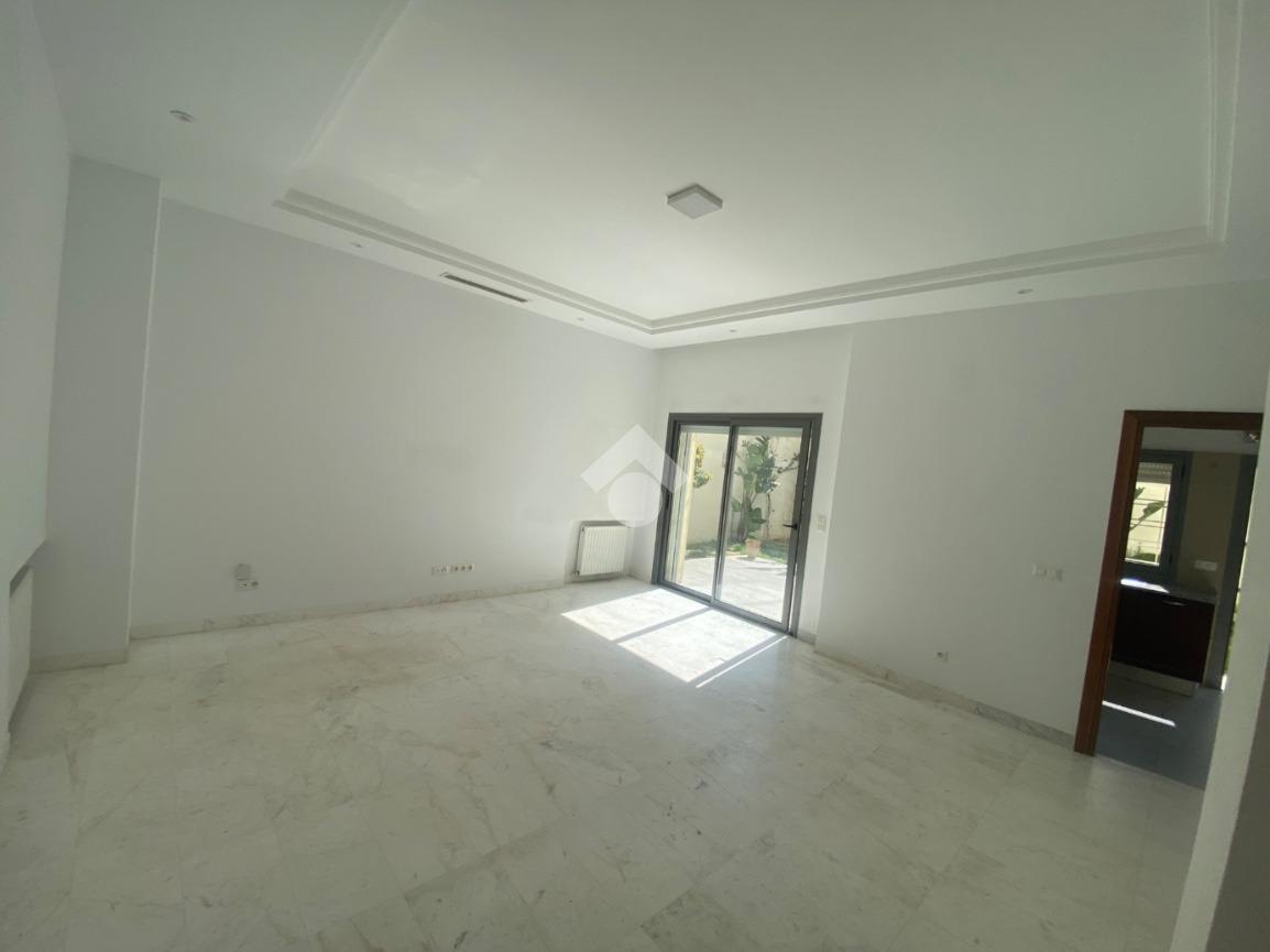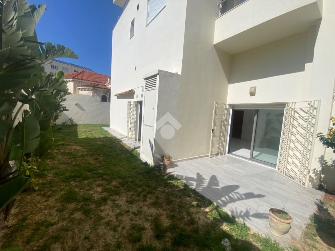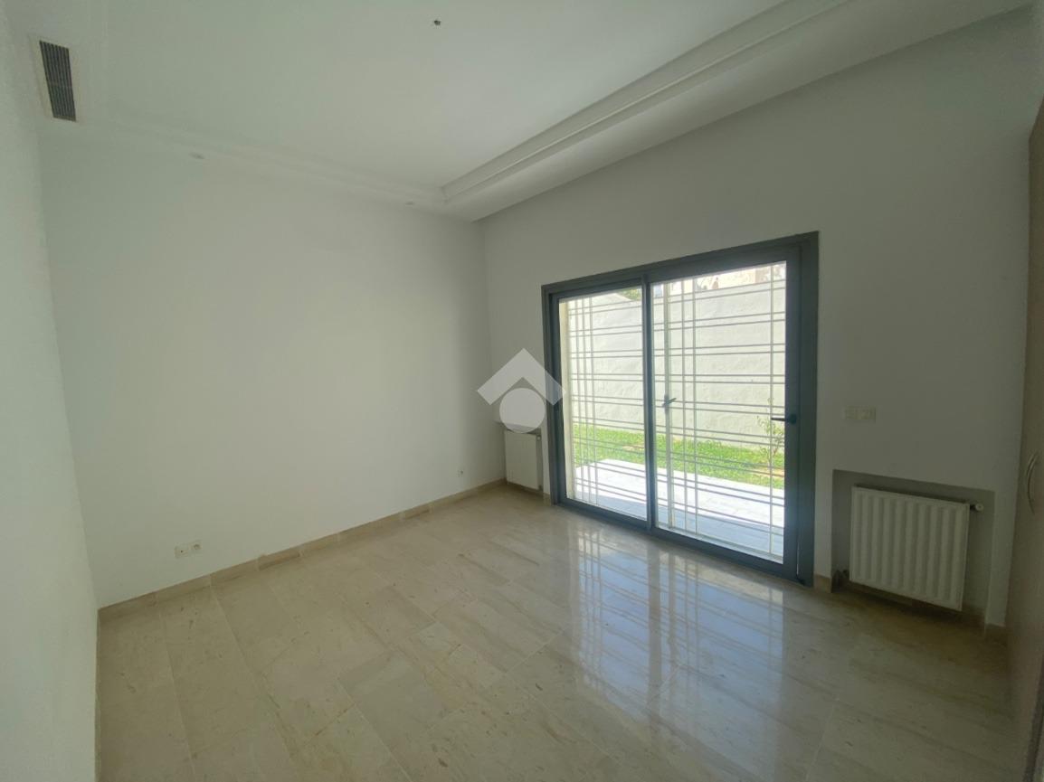 Bel appartement S+2 en rez-de-chaussée, située dans une résidence R+2 gardée et sécurisée d’une superficie de 204 m², dont un grand jardin de 100 m².