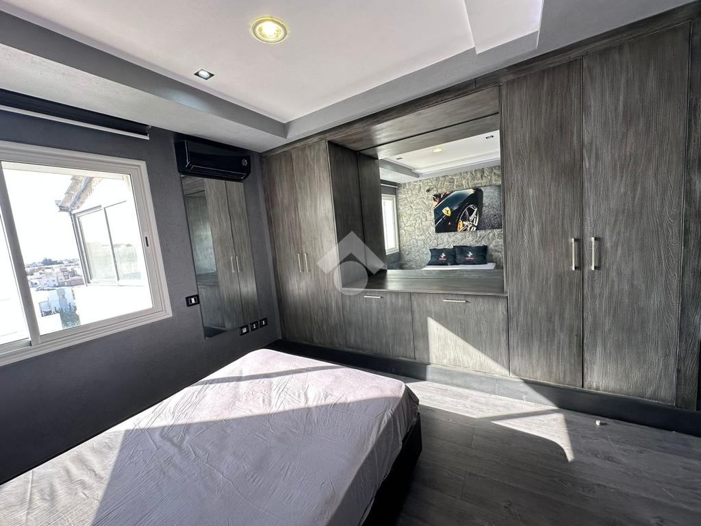 Ce penthouse est situé à une résidence sécurisée et occupe l’intégralité du cinquième étage. Il bénéficie d’un emplacement privilégié à l’Aouina, à proximité de toutes les commodités.