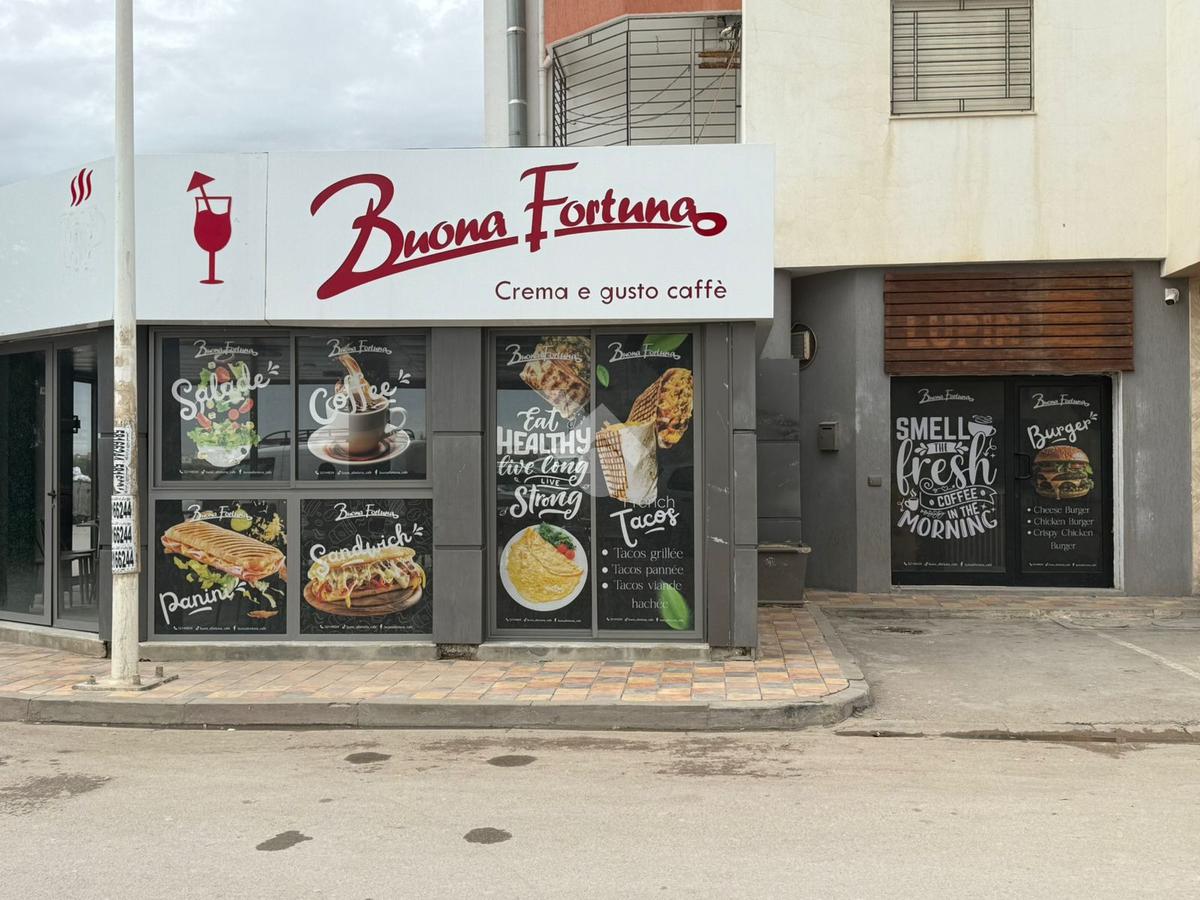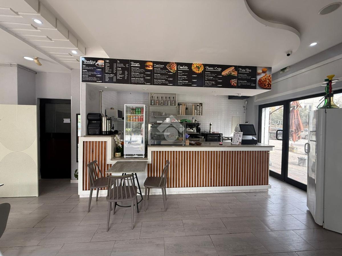 café en location, d’une superficie de 60 m² avec une terrasse de 50 m², entièrement équipé et prêt à travailler. Idéalement situé en face du lycée de l’Aouina, emplacement stratégique avec fort passage quotidien. Opportunité parfaite pour démarrer ou développer votre activité dans un quartier dynamique.