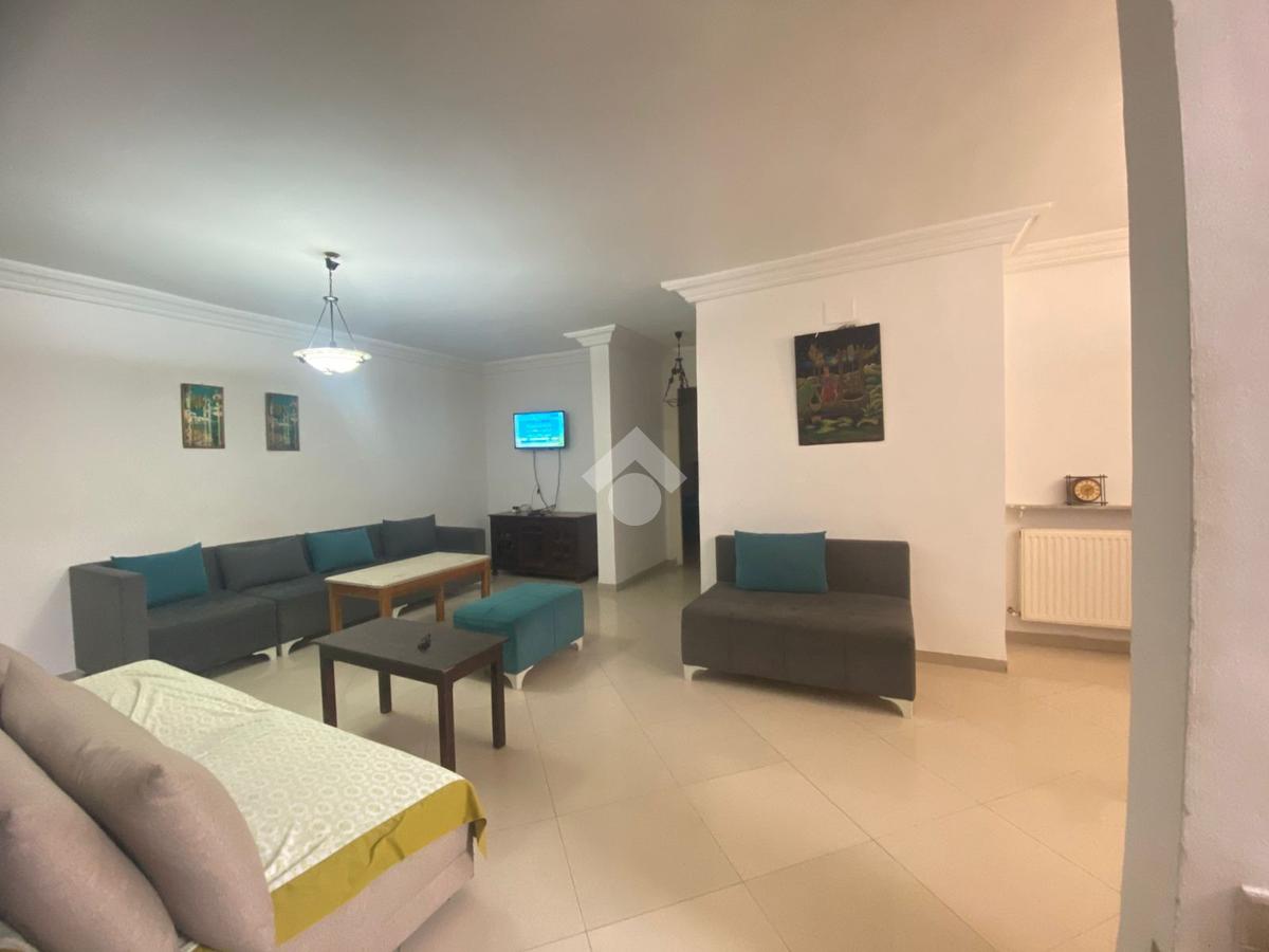 Dès l’entrée, un salon spacieux vous accueille, élgalement aménagé avec deux canapés, une table basse, une salle à manger et un meuble TV. La cuisine, entièrement équipée, dispose également d’un coin repas convivial.