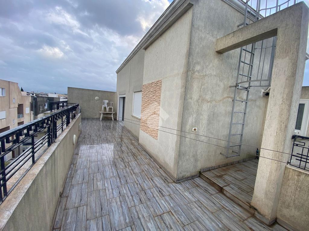 Superficie de 70 m² avec une terrasse de 40 m², équipée d’un débarras pour machine à laver.