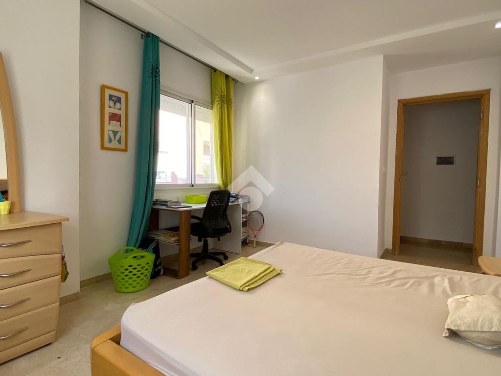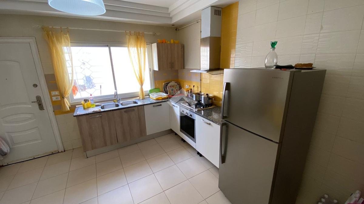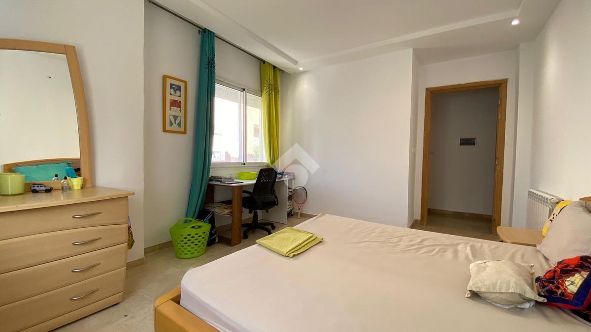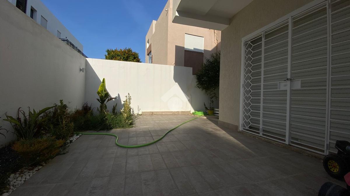 Érigée sur deux niveaux, cette villa, d’architecture minimaliste, s’implante sur un terrain de 320 m² dans un quartier résidentiel. Au rez-de-chaussée,un salon lumineux en double hauteur s’ouvre sur une vaste terrasse; la cuisine, moderne, est aménagée et équipée d’une plaque de cuisson, d’une hotte aspirante et d’un four électrique, avec accès direct à l’extérieur. Le niveau principal comprend également deux chambres, dont l’une bénéficie d’un dressing, ainsi qu’une salle d’eau dotée d’une cabine de douche destinée aux invités. À l’étage, on trouve deux chambres supplémentaires et une salle de bains commune.