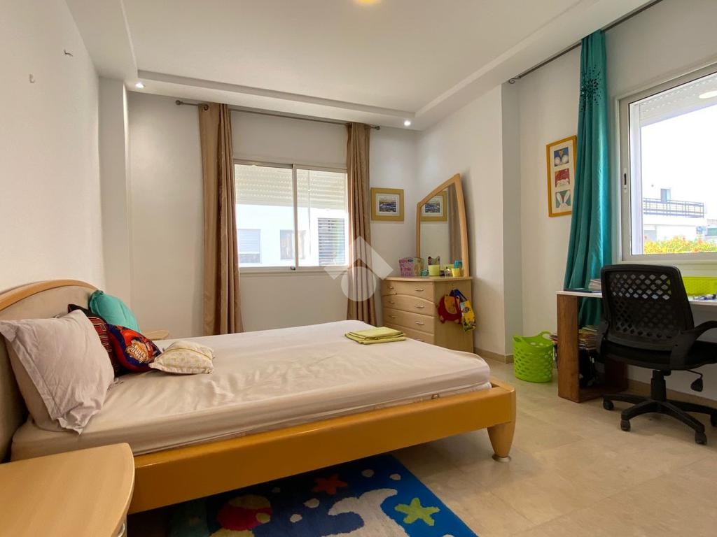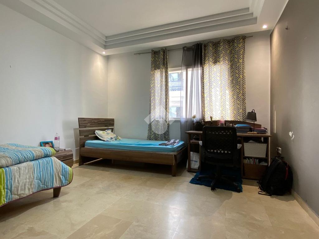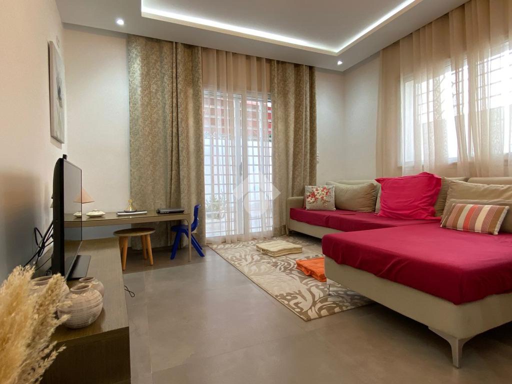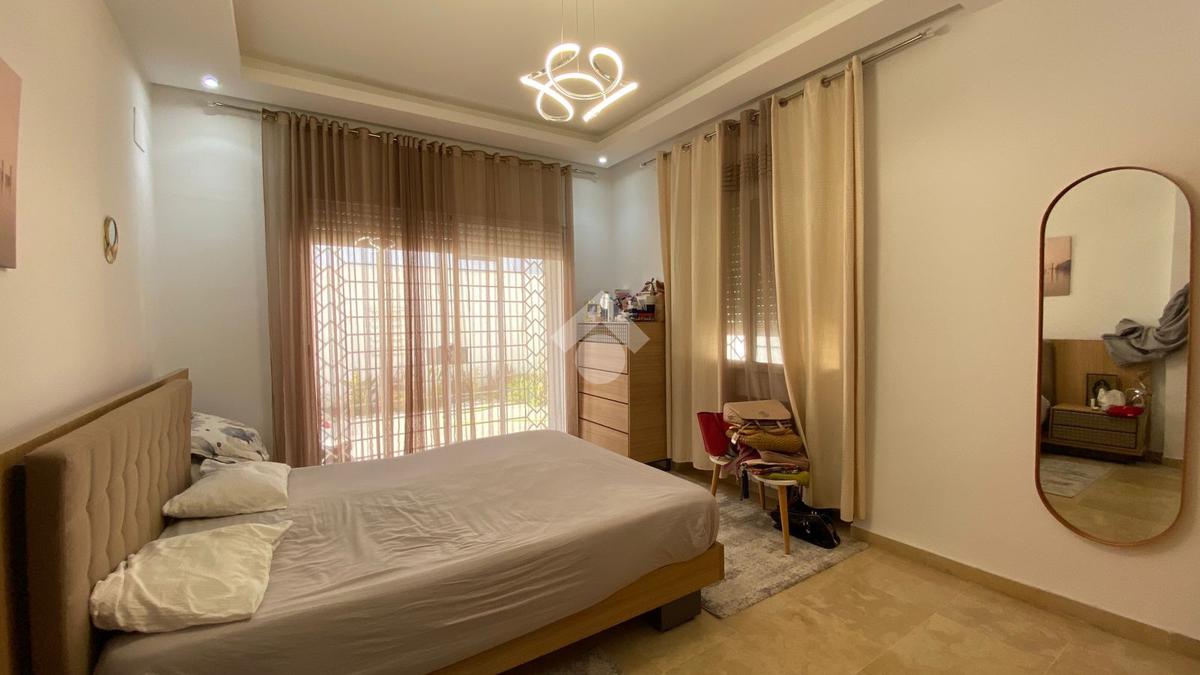 Érigée sur deux niveaux, cette villa, d’architecture minimaliste, s’implante sur un terrain de 320 m² dans un quartier résidentiel. Au rez-de-chaussée,un salon lumineux en double hauteur s’ouvre sur une vaste terrasse; la cuisine, moderne, est aménagée et équipée d’une plaque de cuisson, d’une hotte aspirante et d’un four électrique, avec accès direct à l’extérieur. Le niveau principal comprend également deux chambres, dont l’une bénéficie d’un dressing, ainsi qu’une salle d’eau dotée d’une cabine de douche destinée aux invités. À l’étage, on trouve deux chambres supplémentaires et une salle de bains commune.